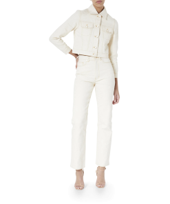 The Monogram jacquard denim jacket is crafted from a cotton fabric in the house’s signature denim for a classic fit. Completed with chest pockets and gold hardware closure. Intended to be worn with its coordinating skirt.